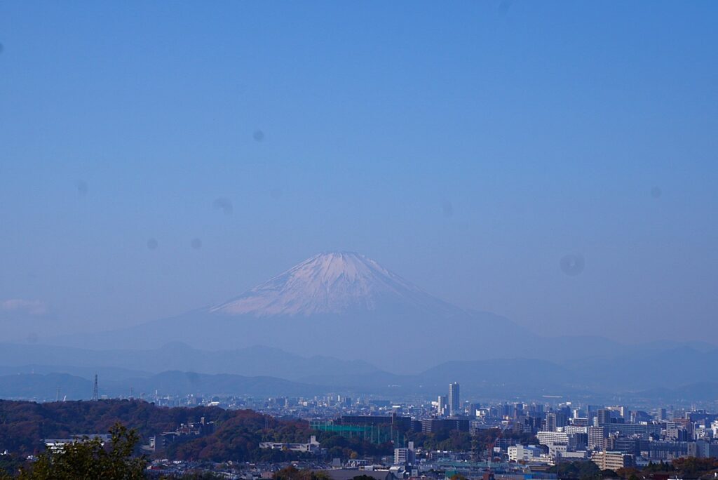 神社の右手前から続く小径を登っていくと、開けた場所に小さな展望台がありました。そこからはなんと富士山の姿が! 思わず立ち止まって、深呼吸をしてしまいました。そのくらい気持ちのいい絶景でした。