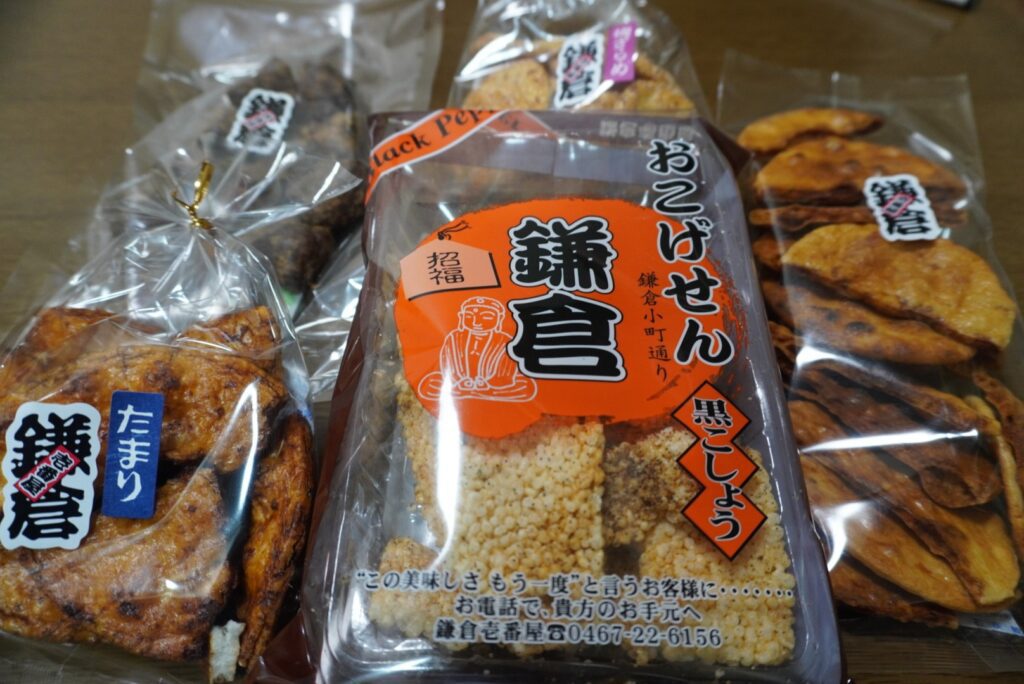 小町通りを歩いていると、しょう油の香ばしい香りが漂ってきました。鎌倉名物の手焼きせんべい店です。
