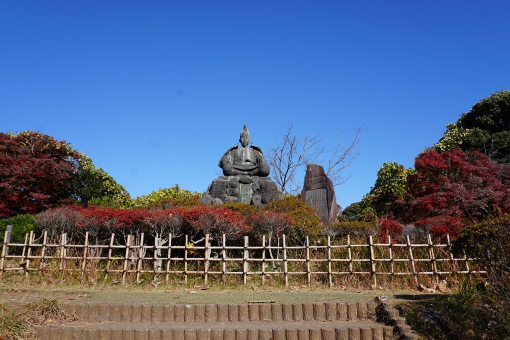 公園の中央には高さ約2メートルの源頼朝像が堂々と鎮座し、訪れる人々を静かに見守っているように見えます。