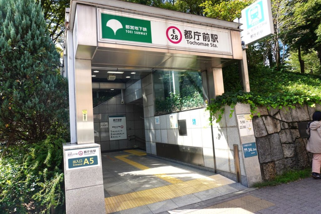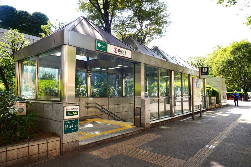 都営大江戸線の都庁前駅は東京都庁舎の地下にある駅で、地上に出ると目の前に都庁がそびえています。アクセスもよく、観光やちょっとしたおさんぽの出発点にぴったりです。A4出口からスタートしました。