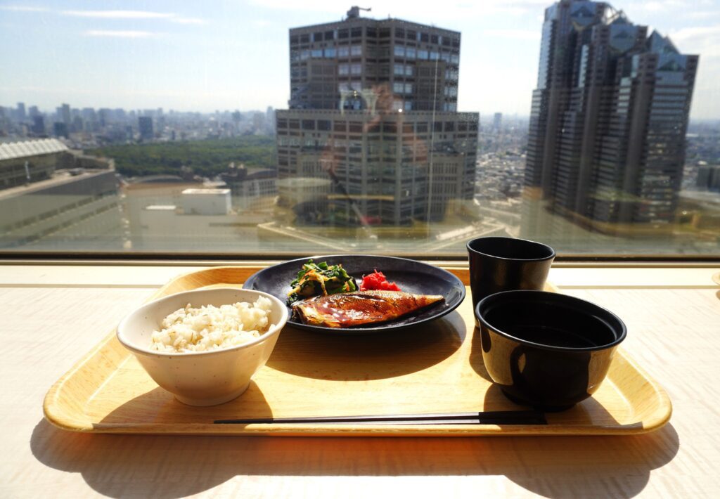 よく見ると海苔に「元祖都庁ラーメン」の模様が! すべてのメニューがリーズナブルな価格なのもうれしいです。窓辺で街並みを眺めらながらのランチは最高でしたよ。
