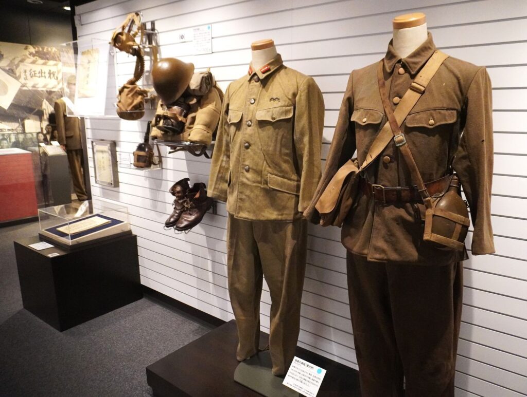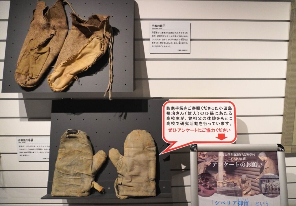 軍服や手製の手袋、靴下など軍隊生活がわかる資料が見られます。