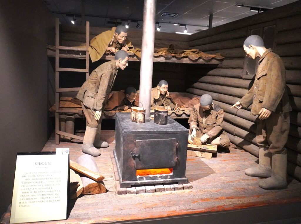 帰還者たちの記憶ミュージアム(平和祈念展示資料館)は、戦後の苦労を物語るさまざまな資料を次の世代へ語り継いでいくことを目的とした資料館です。実物資料、映像、ジオラマなどが展示され、戦争を体験していない世代にもわかりやすく説明書きが加えられていました。