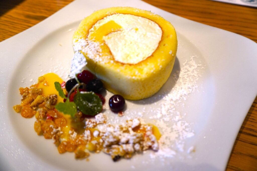ロールケーキは甘すぎないホイップクリームとカスタードクリーム、そしてフルーツのトッピングの相性が絶妙で、とてもおいしかったです。