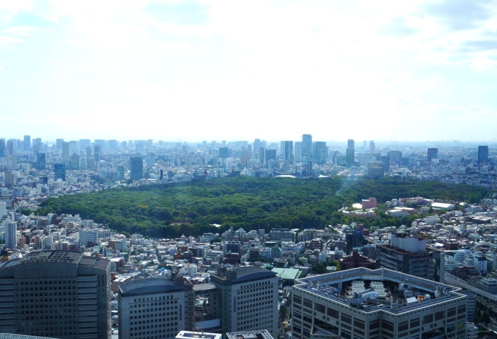 左の写真に見える、大きな緑の森は静寂の杜「明治神宮」です。上から見てもこんなに広大な敷地なのかと、びっくりしました。とても目立ちます。