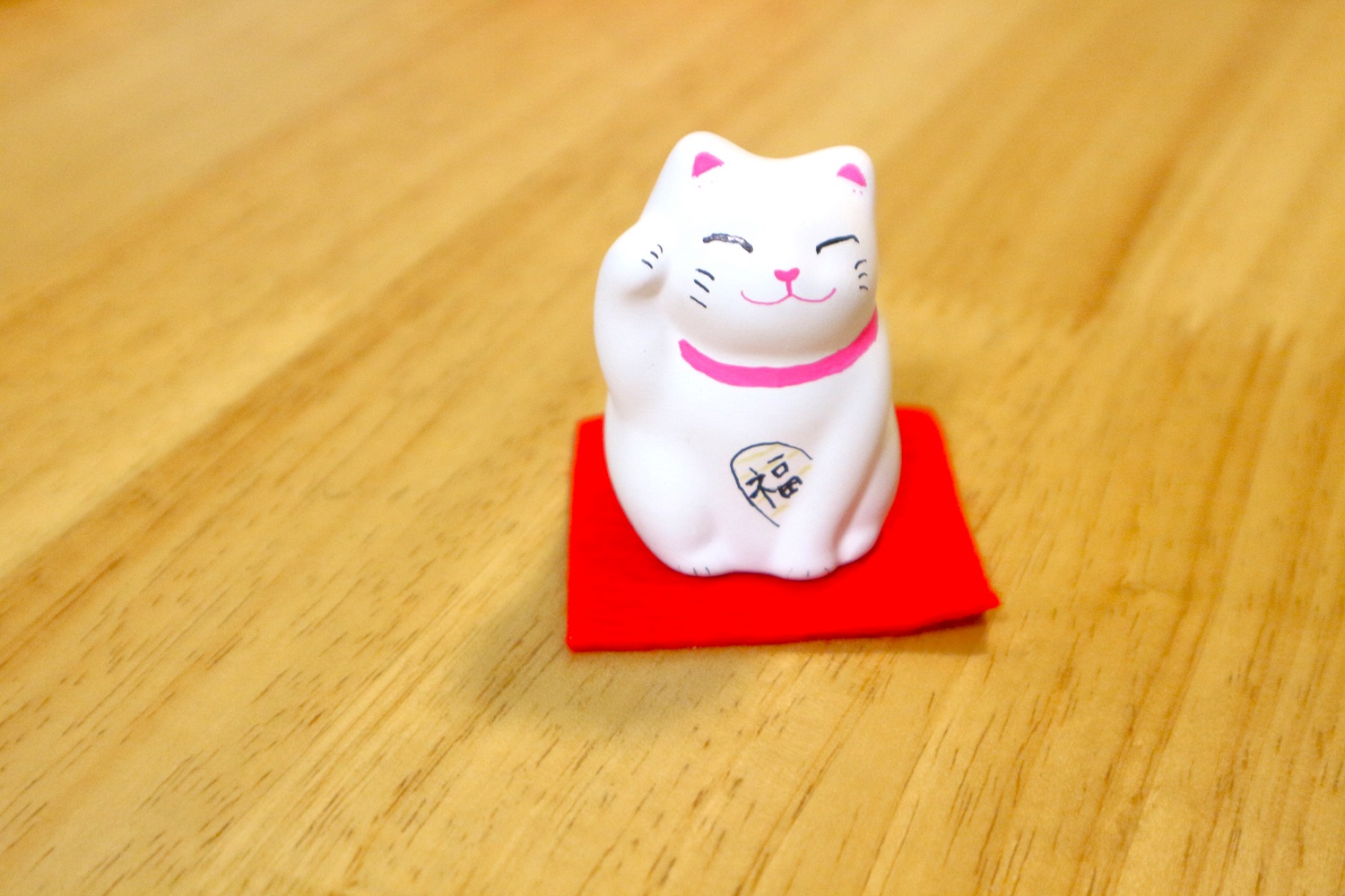 最後は、招き猫を乗せる座布団とともに丁寧に包装してくれます。家に帰ったあと、さっそく飾ってみました♪なんだか、飾っておくと良いことがありそう!